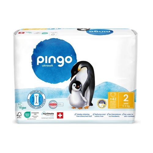 Svájcban, 100%-ban megújuló, vízierőművi energiával gyártva a Pingo Bio T2 pelenkák felelős választást jelentenek mind a baba egészsége, mind a bolygó számára.