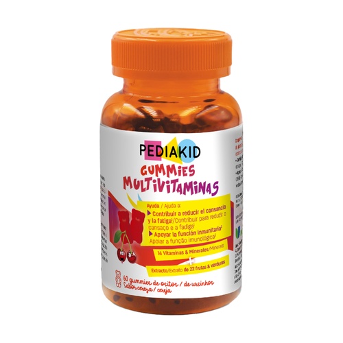 A Pediakid Gummies Multivitamin hozzájárul a fáradtság és kimerültség csökkentéséhez (C-, B2-, B3-, B5-, B6-, B9-, B12-vitaminok). Támogatja az immunrendszer működését (C-, B6-, B9-, B12-vitaminok, cink és szelén). Emellett 22 gyümölcs és zöldség kivonatát is tartalmazza.