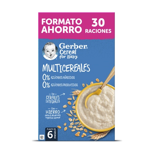 A GERBER Multicereales 0%0% gabonakása sem hozzáadott, sem keletkezett cukrokat nem tartalmaz, mivel nem adunk hozzá cukrokat, és nem használunk hidrolizált vagy dextrinizált gabonákat. Teljes kiőrlésű gabonákat tartalmaz csecsemők számára, amelyek a gabonák tápanyagdúságát, vasat, 8 vitamint és 4 ásványi anyagot biztosítanak. Ezenkívül a GERBER gabonáink fenntartható gazdálkodási gyakorlatok szerint termesztettek, és a csomagolásaink FSC® tanúsítvánnyal rendelkeznek.