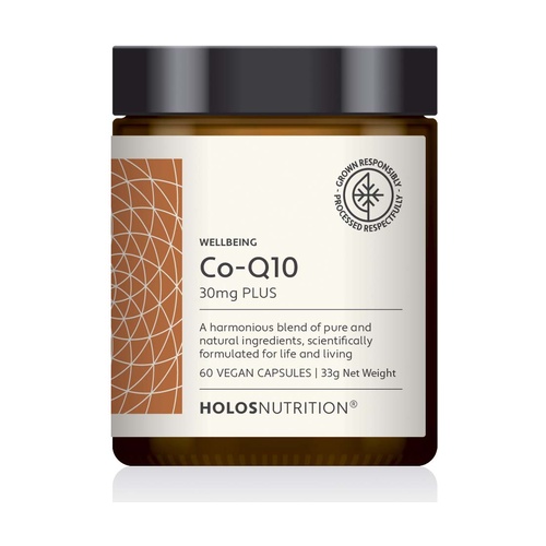 A mitokondriumok, a sejtek „energiaforrása”, rendszeres koenzim Q10 bevitelét igénylik a test és az elme hatékony és egészséges működésének fenntartásához. HOLOS Nutrition® Co‑Q10 30mg Plus természetes bioaktív ubikinont tartalmaz, amelyet szinergikus növényi összetevőkkel egészítettek ki, amelyek táplálják a mikrobiomot, hogy fejlett támogatást nyújtsanak a szív- és érrendszer egészségéhez és az ATP termeléséhez. A magnézium-aszkorbát védelmet nyújt az oxidatív stresszel szemben és támogatja az egészséges energia-anyagcserét, míg a közepes láncú trigliceridek (TCM) és a fekete bors segítik a koenzim Q10 biológiai hozzáférhetőségének optimalizálását.