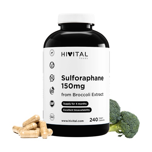 Hivital 150 mg szulforafán egy étrend-kiegészítő, amely természetes brokkoli (Brassica Oleracea L) kivonaton alapul, és segíthet a szabad gyökök és a rosszindulatú sejtek elleni küzdelemben. Emellett segíthet a vörösvértestek termelésének javításában és a szervezet méregtelenítésében, valamint a vércukorszint csökkentésében.