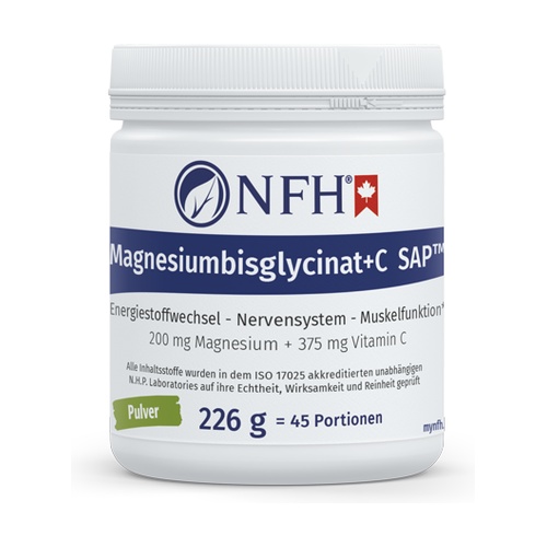 Magnézium-biszglicinát + C SAP™ az NFH-tól. Egy gyomorkímélő, teljesen hasznosult és magas biológiai hozzáférhetőségű magnéziumforma, praktikus por formájában, finom italokhoz, természetes citrom-lime aromával.