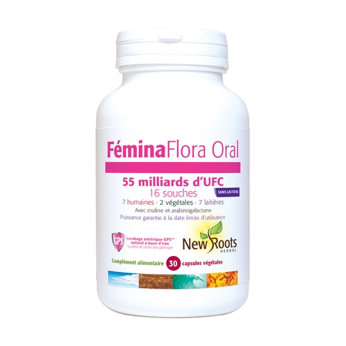 A New Roots Herbal FéminaFlor Oral több mint 55 milliárd CFU-t tartalmaz, 16 probiotikus törzzsel, amelyek közül 7 emberi eredetű, 2 növényi eredetű és 7 tej eredetű. Több mint 31 milliárd CFU-t tartalmaz a Lactobacillus rhamnosus és a Lactobacillus casei törzsekből, amelyek meghatározóak a hüvelyi flórában és tejsavat termelnek. Új formula Lactobacillus crispatus és Lactobacillus gasseri törzsekkel, amelyek a leggyakoribb probiotikumok közé tartoznak a hüvelyi mikrobiomban, továbbá Bifidobacterium breve és Lactobacillus johnsonii is megtalálható benne.