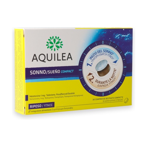 A Sonno Compresse di Aquilea egy étrend-kiegészítő, amelyet a minőségi alvás elősegítésére terveztek a bistrato tabletták formulájának köszönhetően, amelyek az összetevők felszabadulását szabályozzák.