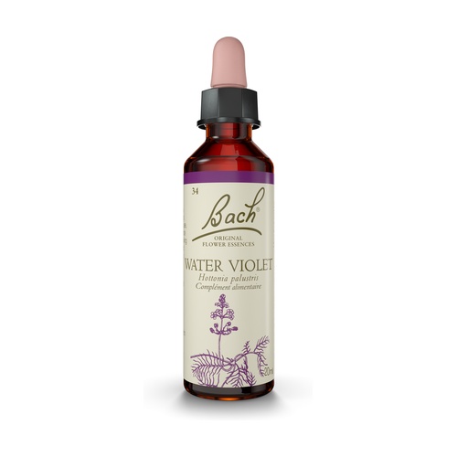 A Bach® Eredeti Virágok Water Violet olyan embereknek való, akik szeretnek egyedül lenni, de nem akarnak elérhetetlennek tűnni. Inkább maguk oldják meg a nehézségeiket. Francia név: vízi ibolya.