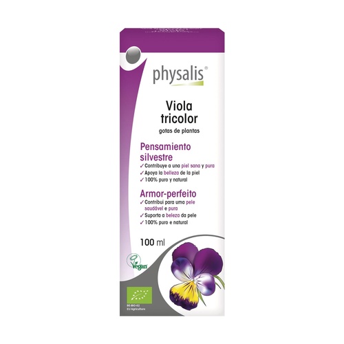 A Physalis Viola tricolor bio növényi cseppek elősegítik a bőr egészségét. A Physalis hidroalkoholos kivonatok friss, biogazdálkodásból származó növényekből készülnek. Tiszta és koncentrált forrása az aktív hatóanyagoknak, nem tartalmaznak hozzáadott anyagokat.