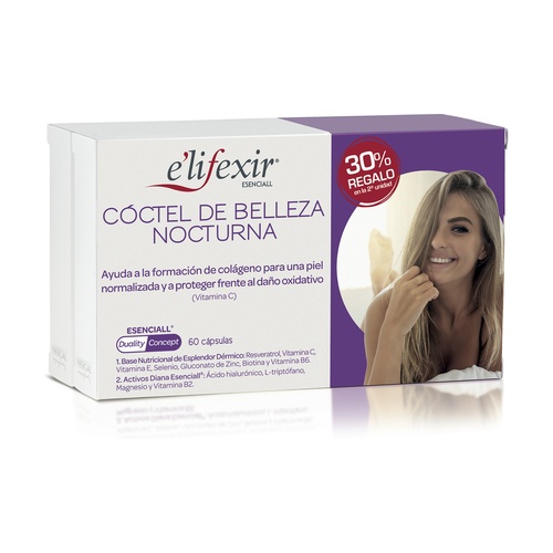 Elifexir Esenciall Éjszakai Szépségkoktél egy hialuronsav alapú étrend-kiegészítő kapszulákban. Ragyogó bőrt biztosít, jó közérzet hatása ébredéskor, mintha 8 órás mély pihenést nyert volna. Használd ki teljes mértékben az arcod szépségének potenciálját.