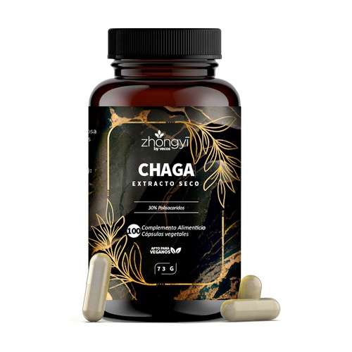 Vecos 500 mg száraz Chaga-kivonat egy táplálékkiegészítő, amely 30% betaglükán standardizált Chaga-gomba száraz kivonatán alapul, melyek immunmoduláló és antioxidáns tulajdonságairól ismertek.