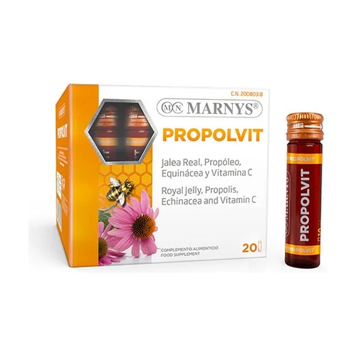 A Propolvit védekezés és energia tartalmaz egy exkluzív formulációt a Méhpempő, Feketeáfonya tisztított Propolisz, Echinacea és C-vitaminból. A Propolvit természetes összetevőinek tulajdonságai a következők: C-vitamin, ami egy vízben oldódó vitamin, amely hozzájárul az immunrendszer normál működéséhez és az energia-anyagcseréhez (EFSA). A Méhpempő a méh királynő tápláléka, és jellemző rá a telítetlen zsírsavak aránya, amelyek részt vesznek az energia-anyagcserében, kiemelve a 10-hidroxi-2-decensav (10-HDA). Echinacea purpurea egy növény, amelyet széles körben alkalmaznak és tanulmányoznak. Javított propolisz, amely saját technológiával inaktív anyagokat, például viaszt távolít el, és garantálja a flavonoidok minimális tartalmát, amely 10%-ot tesz ki galanginban kifejezve. Ez egy kiváló étrend-kiegészítő azok számára, akik szeretnék harmonizálni a védelmet és az energiát, még magas energiaszükséglet esetén is.