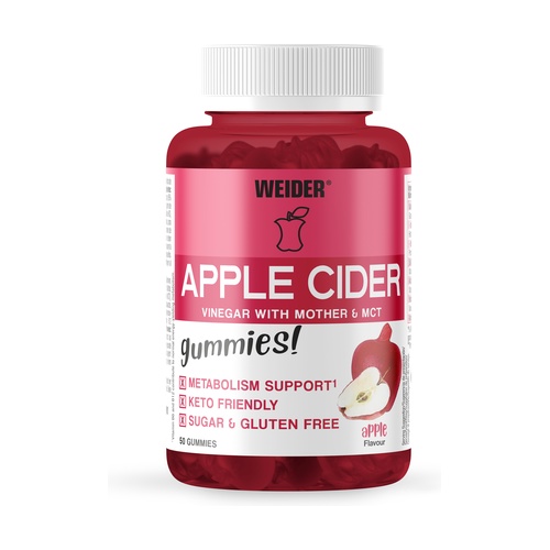Inulin, almaecet, kókuszolaj (95% közepes láncú trigliceridek (MCT), Cocos nucifera), víz, zselésítő: pektin, savanyúságot szabályozó: citromsav, növényi kókuszolaj, növényi repceolaj, bevonóanyag: karnaubaviasz, alma aroma, nátrium-klorid, színezék: antocián, céklalé-kivonat (Beta vulgaris), B6-vitamin (piridoxin-HCl), gránátalmalé por, folsav (pteroilmonoglutaminsav), kálium-jodid, céklalé por, B12-vitamin (cianokobalamin).