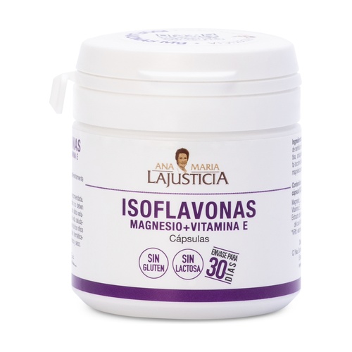 Magnéziumot és E-vitamint tartalmazó izoflavonok az Ana Maria Lajusticia márkától egy növényi eredetű anyagokat tartalmazó étrend-kiegészítő, amelyeket funkcionális hasonlóságokkal ruháznak fel az ösztrogénekhez, ezért ajánlottak a menopauza idején.