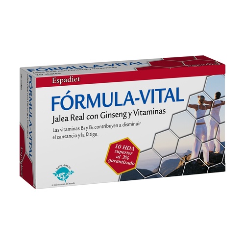 Friss méhpempő (500 mg), ginzeng folyékony kivonat (200 mg), L-taurin (50 mg), guarana száraz kivonat (45 mg), kóla dió száraz kivonat (25 mg), B3-vitamin (2,4 mg), B5-vitamin (900 µg), B2-vitamin (210 µg), B6-vitamin (210 µg), B1-vitamin (166 µg).