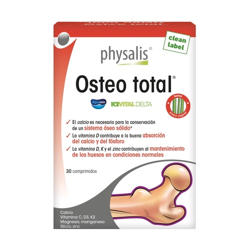 A Physalis Osteo Total egy növényi és tápanyag alapú étrend-kiegészítő. Képlete tartalmazza az Aquamint, egy "whole food" ásványi komplexet, amely vörös algákból származik, gazdag kalciumban és kiváló biohasznosulással rendelkezik.