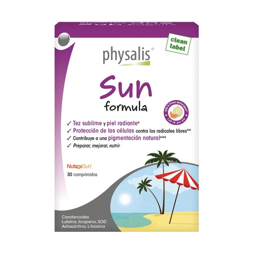 A Physalis Sun Formula egy étrend-kiegészítő. A Physalis Sun Formula egy komplex NutroxSun™-nal, egy grapefruit és rozmaring keverékkel, amely javítja a bőr rugalmasságát és jelentősen csökkenti a bőrpírt az UV-sugárzásnak való kitettség után.