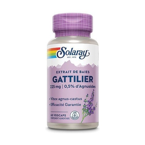 A Solaray Gattilier (Vitex) 225 mg egy étrend-kiegészítő kapszula formában, standardizált gattilier bogyókból készült, amely elősegíti a hormonális egyensúlyt és segít a menstruációs problémák esetén.
