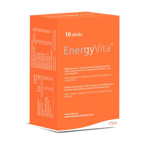 EnergyVita de Vitae egy koncentrált multivitamin, homoktövisléből és sütőtökpüréből készül. Ez egy étrend-kiegészítő, amelyet homoktövis és sütőtök összezúzásával állítanak elő, amíg sima, homogén állagot nem kapnak, hőkezelés nélkül, hogy minden vitamin és nyomelem megmaradjon. Ezt a technikát azért alkalmazzák, hogy a gyümölcsök és zöldségek ízét és minden biológiai tápanyagát maximálisan kihasználják. Emellett a felhasznált levek prebiotikus hatású rostforrást biztosítanak, amely elengedhetetlen az immunrendszerünk számára.