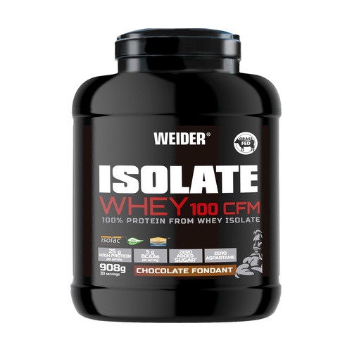 A Weider Isolate Whey 100 CFM csokoládé ízű, magas tisztaságú és prémium minőségű izolált tejsavófehérje (Isolac®). Emésztőenzimekkel (Digezyme®) dúsított, nem tartalmaz cukrot, és alacsony zsírtartalmú.