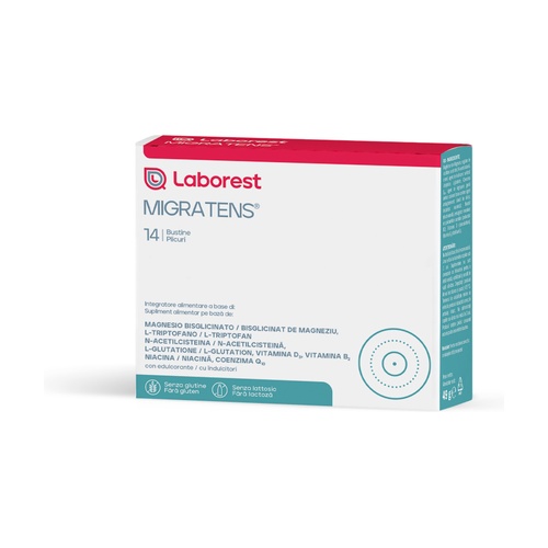 Migratens® egy étrend-kiegészítő, amely magnéziumot biszglicinát formában, L-triptofánt, N-acetilciszteint, L-glutationt, D3-vitamint, B2-vitamint, niacint és koenzim Q10-et tartalmaz, hasznos megnövekedett igény esetén ezen anyagokból. A D-vitamin és a magnézium hozzájárul a normál izomműködéshez. A magnézium, niacinnal és B2-vitaminnal együtt hozzájárul az idegrendszer normál működéséhez, valamint a fáradtság és kimerültség csökkentéséhez.
