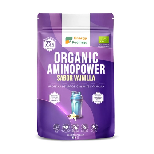 Az Energy Feelings Organic Amino Power Eco 75% vanília egy kiegyensúlyozott kombinációja 3 kiváló minőségű, ökológiai gazdálkodásból származó növényi fehérje kivonatnak: bio csíráztatott barna rizs nyers fehérje, bio borsófehérje és bio ipari kender magfehérje. A 3 fehérje pontos arányban van kombinálva, hogy egy rendkívül gazdag aminosav formulát alkosson, amely kulcsfontosságú az izomtömeg fejlődéséhez és fenntartásához. Kivételes 75 g fehérjével 100 g termékenként, ez egy teljes aminosav formuláció, mely biológiai értékben nem marad el az állati eredetű fehérje készítményektől.