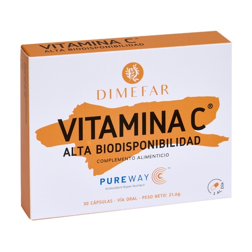 A Dimefar Pureway-C 500 mg C-vitamin magas biológiai hozzáférhetőségű C-vitamin alapú táplálékkiegészítő.