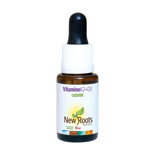 A New Roots Herbal napi K2+D3 vitamin adagja K2-vitamin (menakinon-7) és D3-vitamin (kolekalciferol), közepes láncú triglicerid mátrixban formulázva. Ez a tápanyagkombináció alapvető a csontok egészségének megőrzéséhez.
