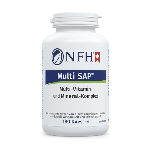 Multi SAPTM az NFH-tól egy vitaminokon, ásványi anyagokon és a lipotróp faktor, az inozitol növényi alapú formáján alapuló étrend-kiegészítő a tápanyagok jobb felszívódása érdekében. Egy nagyon teljes formula, amely összetevőket tartalmaz a legaktívabb és legbiológiailag hozzáférhetőbb formáikban.