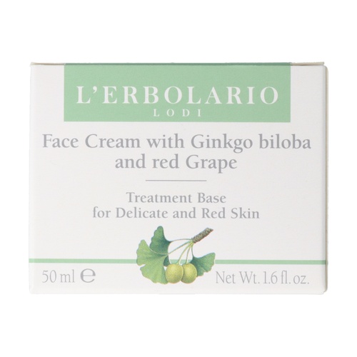 Ginkgo Biloba és Vörös Szőlő arckrém az L'Erbolario-tól, alapkezelő a finom és kipirosodott bőrre Ginkgo biloba és vörös szőlő kivonattal