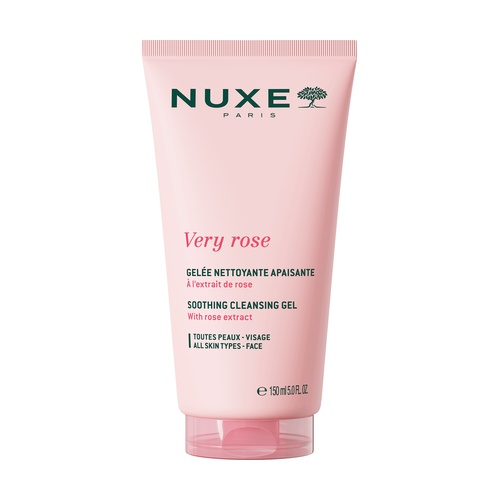 A Nuxe Very Rose nyugtató tisztító gél egy gyengéd gél, amely tisztít és nyugtat, hatékonyan eltávolítja a szennyeződéseket anélkül, hogy száraz érzetet hagyna. Minden bőrtípusra készült, a bőrt ellenállhatatlanul puhává, megnyugtatottá és nyugodttá varázsolja.