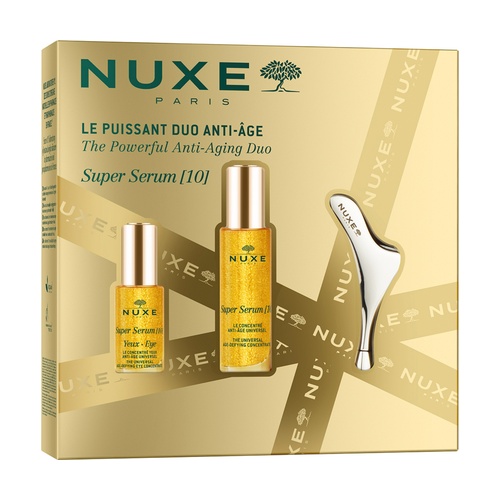 Ez az ajándékszett tartalmazza a Super Serum 10 univerzális öregedésgátló koncentrátumot, a Super Serum 10 univerzális öregedésgátló szemkörnyék koncentrátumot, valamint az Arcmasszázs eszközt. Franciaországban megalkotott és gyártott kozmetikum.