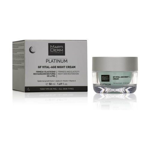 A Martiderm Platinum Gf Vital Age Night Cream egy krém, amely helyreállítja a bőr vitalitását, intenzív táplálást és hidratálást nyújt, visszanyeri a feszességet és rugalmasságot.
