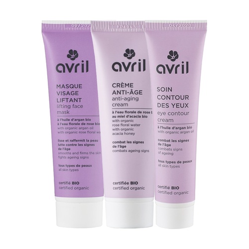 A Pack Érett bőr tartalmaz 3 elengedhetetlen terméket az Avril érett bőr ápolásához; 50 ml-es Bio lifting arcmaszkot, 50 ml-es Bio öregedésgátló krémet és 40 ml-es Bio szemkörnyékápolót.