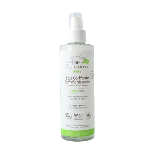 Az Alphanova hajvíz egy háromszoros hatású kölni víz. Frissítő víz, amely ideális a bőr felfrissítésére tisztítótej használata után, illatosított vízként vagy hajfésülő vízként a haj rendezéséhez.
