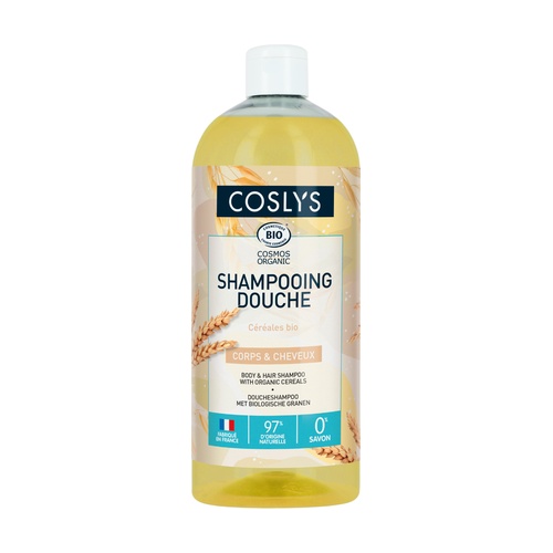 Coslys gabonafürdősampon 2 az 1-ben formula test és haj mosására. Gyakorlati, különösen a családi használatra adaptált.