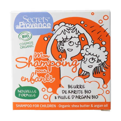 A Secrets de Provence gyermekeknek szánt szilárd samponja növényi olajokból készül, sheavajjal és argánolajjal gazdagítva a gyengédségért, valamint levendula illóolajjal.