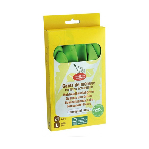 A La Droguerie Écologique nagyméretű FSC természetes latex kesztyűi ideálisak mosogatáshoz, házimunkához, barkácsoláshoz, kertészkedéshez.