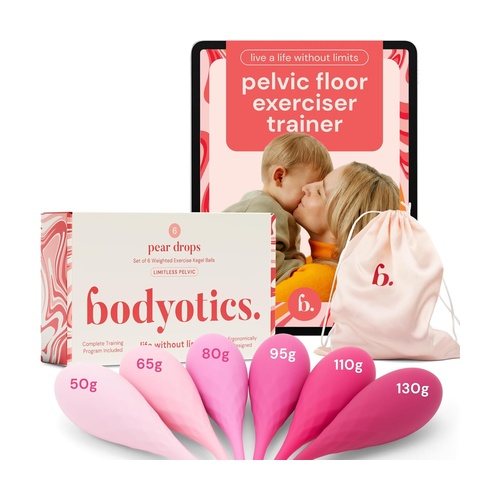 Deluxe soft - Bodyotics medencefenék súlykészlet. A test különféle változásokon mehet keresztül a szülés után, például csökkenhet a kontrollérzet a medence területén. A Kegel-gyakorlatok beépítése a napi rutinba hatékony módja lehet ennek a területnek az erősítésére és támogatást nyújthat köhögés, tüsszentés vagy futás közben. Ez a készlet a kényelem és jólét jegyében készült, támogatva azokat, akik szeretnék beiktatni ezt a fajta tornát a mindennapjaikba.