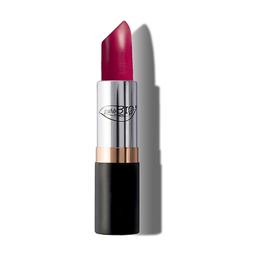 Ökológiai Szájrúzs Eper Szín PuroBio luxus rúzs teljes fedéssel, kényelmes, krémes és félmatt finishel.