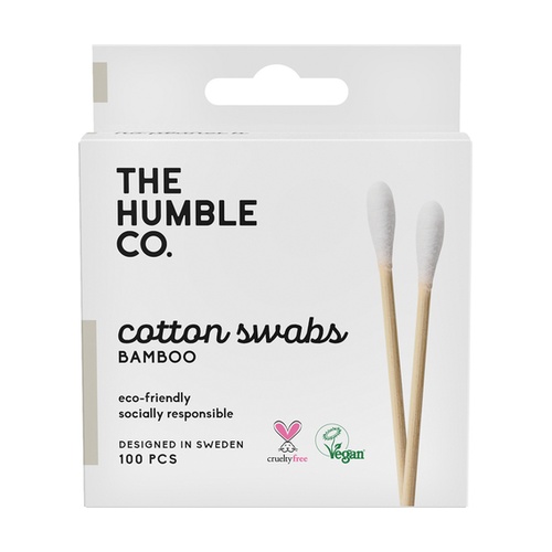 Természetes fehér pamutpálcika Humble Brush, elegáns és sima pamutpálcikák 100%-ban lebomló és tartós bambusz nyéllel. Organikus pamut természetes színezéssel a végeken.