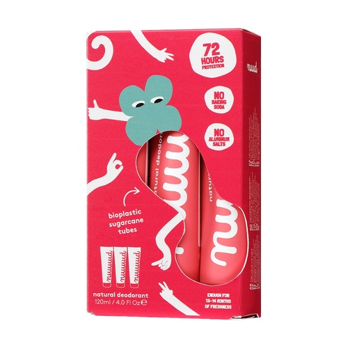 xXL pack red - Nuud természetes dezodor egy 3 darabos, 40 ml-es csomag. Ezzel a csomaggal 60 hét friss hónaljat élvezhetsz, mivel a tubusok nagyobbak, mint a standardok. Ez a dezodor hatékony szagellenes védelmet nyújt 3–7 napig egyetlen alkalmazással. Segít megelőzni a kellemetlen szagokat azáltal, hogy semlegesíti a baktériumokat ezüst mikrorészecskék segítségével.