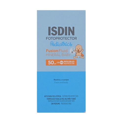 Az Isdin Fotoprotector mineral baby 50+ egy folyékony fényvédő fizikai szűrőkkel, kifejezetten a baba érzékeny bőrére formulálva. 0 hónapos kortól. Arcra és testre.