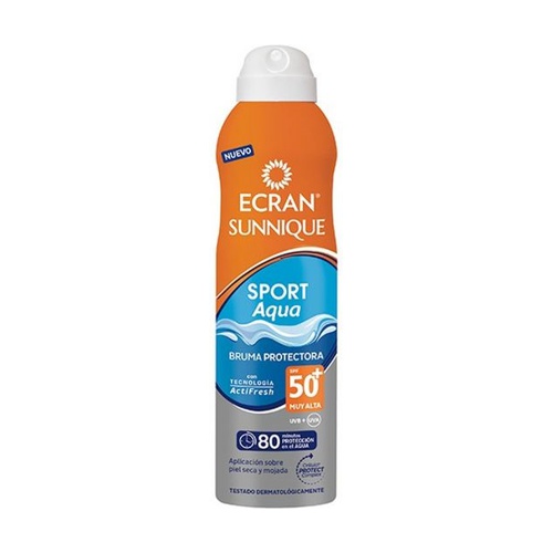Az Ecran Sunnique Sport Aqua védőpermet SPF50+ egy védőpermet, amely 80 percig nyújt védelmet a vízben. Acti-Fresh technológiája azonnali frissességet biztosít, és hagyja lélegezni a bőrt. Magas fokú védelmet nyújt a legextrémebb körülmények között is.