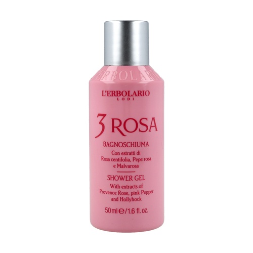 A Minitaglia Bagnoschiuma 3 Rosa dell'Erbolario egy testtisztító, amely lágyító és védő hatású, köszönhetően a rózsabors bogyóiból és a százlevelű rózsa és a mályvarózsa virágaiból nyert értékes folyékony kivonatoknak.