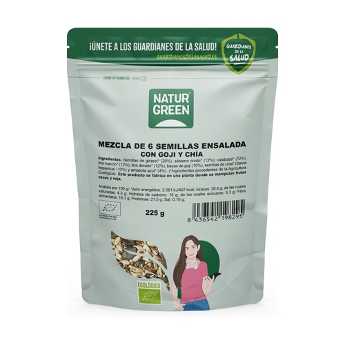 6 mag keveréke salátához, bio goji bogyóval és chia maggal.