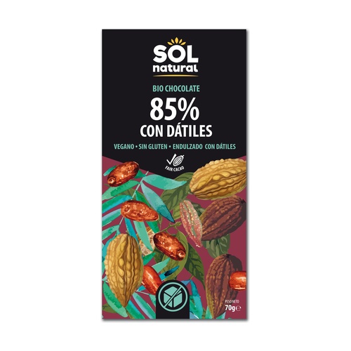 85%-os vegán csokoládé datolyával, Bio, Sol Natural.