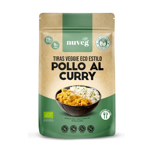 A Nuveg Eco Curry-s Csirke egy egyszerű, szárított zöldségekből (texturált és porított formában) álló keverék, amelyet hidratálás és összekeverés után olyan húspótlóvá alakíthatunk, amely ízében és állagában tökéletesen megfelel egy rendkívül egészséges étel élvezetéhez, gyorsan és egyszerűen.