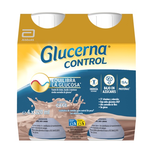 Glucerna® Control kávé ízű tudományosan megalkotott étkezéshelyettesítő. Krómot tartalmaz, amely segít a normál vércukorszint fenntartásában. Minden adag 223 kcal energiát, 15,4 g magas minőségű fehérjét és 27 vitamint valamint ásványi anyagot biztosít, így egy teljes és kiegyensúlyozott étkezés tápanyagait nyújtja.