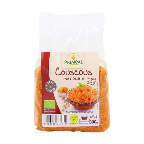 A Primeal marokkói kuszkusz egy finom vegán recept marokkói stílusban, búzakuszkuszból és csicseriborsóból készül, fűszerekkel ízesítve.