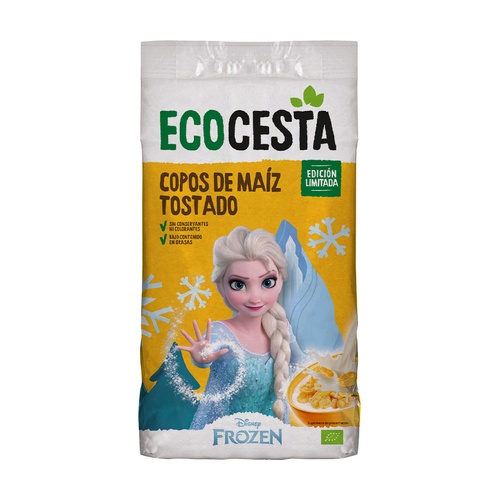 Pirított kukoricapehely az Ecocestától. Ezt a terméket váltakozva szállítjuk, vagyis Frozen vagy Cars csomagolásban kaphatja meg.