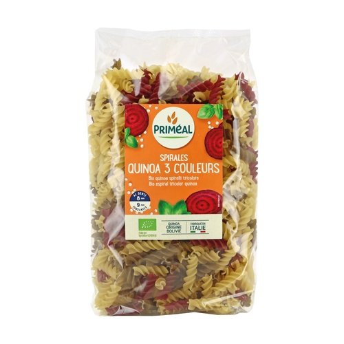 A Primeal búza- és quinoa háromszínű spiráljai búzából és quinoából készülnek. Ideálisak egy ízletes, színes meleg ételhez vagy egy friss salátához.