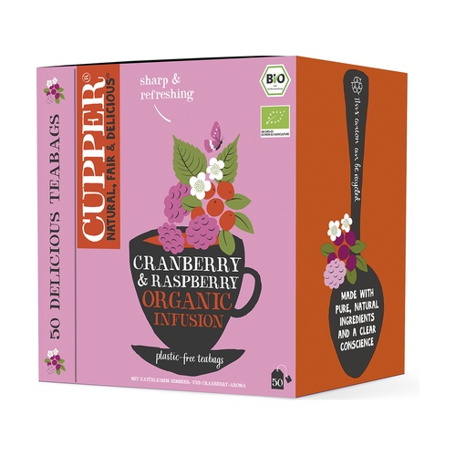 hibiszkusz* 42%, csipkebogyó*, csalán* 13%, édesgyökérgyökér*, természetes málna aroma 5%, természetes áfonya aroma* 3%, áfonyadarabok* 1%, málnadarabok* 1%.